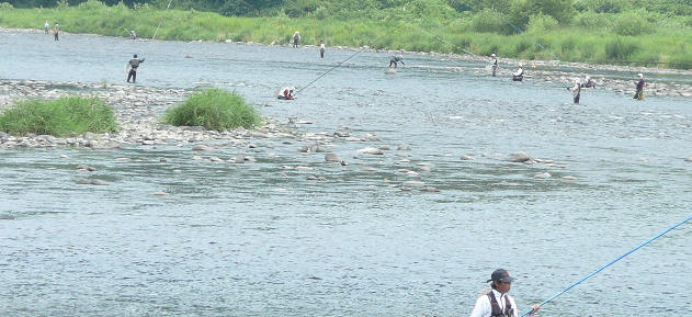 1週間も更新無しで、自分自身驚きです。申し訳有りません。 1週間本当に色々忙しく終わってしまいました。 昨日の午後、年釣券をお買い求めのお客様から電話を頂きました。 「まだ沢山の鮎がいるが放流されたのですか?」 本当に沢山いるようです。専用区以外の場所で、組合員の方が投げ網で漁獲されております。 まだまだ周年釣り専用区では友釣りをされております。本日も良い釣日和でありますように・・。