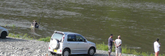 日中は気温も高く周年釣り専用区は、連日沢山のお客様に入川して頂いております。 昨日 午後たまたま HPでお馴染みの金蔵日記(金丸 優貴様)が事務所前へ通りかかれましたので、周年釣り専用区の釣果を教えて頂きました。 竿:9.5 水中糸 ナイロン0.3号 : ハリ6.5号3本イカリ: 5匹 :16〜22cm 5時間 一宮からお越しのお客様は、3日前は、本年度自身の今年最高の釣果であったが、昨日は場所は良い所に入れたが5匹との事。 朝・夕の温度差で魚が動くのかな? って話して下さいました。まだまだ「鮎」いっぱいいますよ。・・・と本日も出発して下さいました。車を見送りながら・・・頑張って下さい。 本日も天気良し・・良い釣日和でありますように・・・。